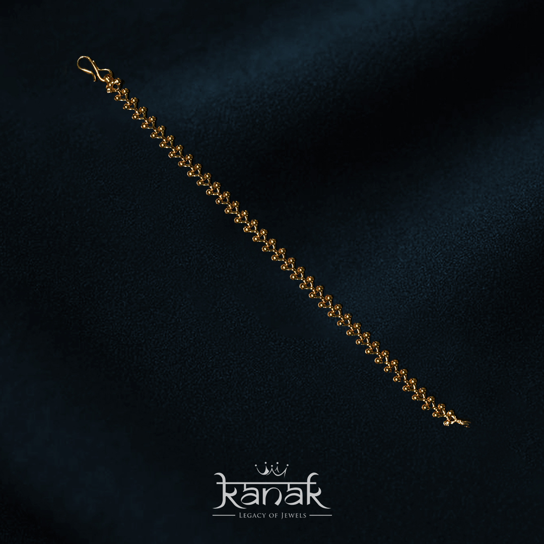 Crafted with precision and passion, this 24K gold bracelet captures the beauty of traditional artistry in a modern silhouette. Each golden bead glimmers with warmth, celebrating the essence of luxury and heritage from Kanak – Legacy of Jewels.